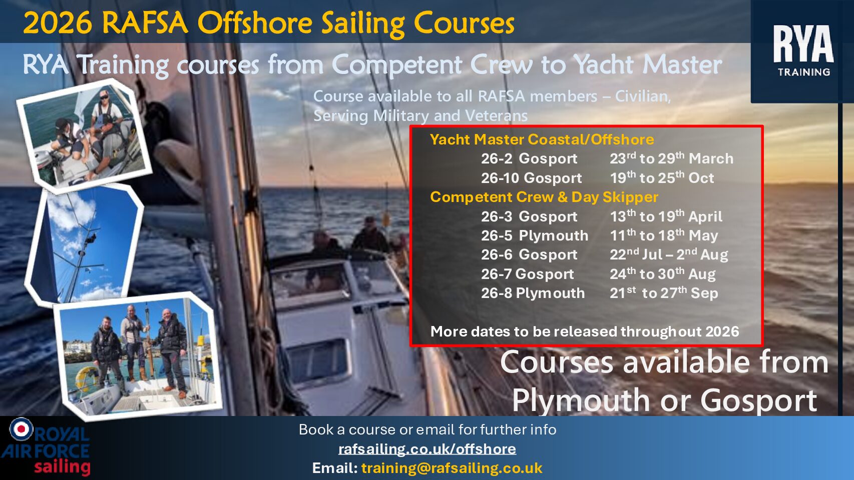 All of our Courses are open to serving RAF Regular and Reserve personnel, veterans, RNSA, ASA Members and their dependents. Additionally, civilians who are ineligible to join RAFSA may be accepted on a fill-up basis. We welcome novice and expert sailors alike and deliver a broad range of RYA qualifications, from beginner to instructor.